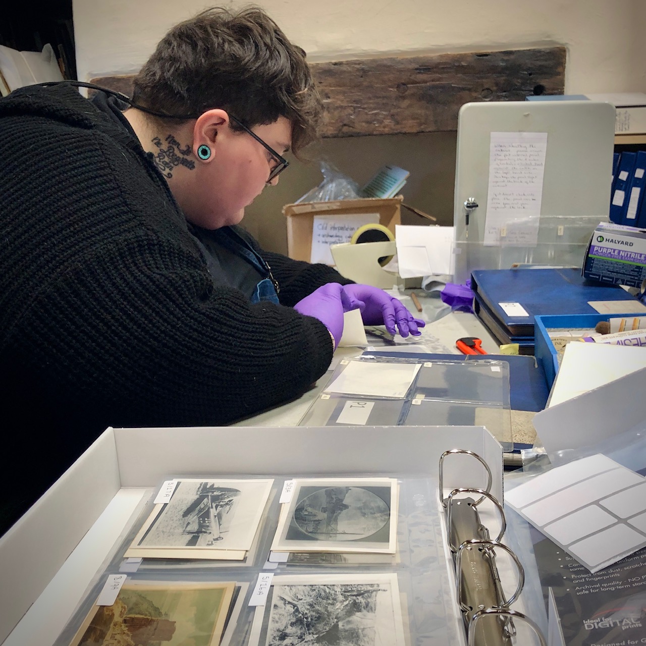 This wonderful work was kick started by volunteer, Charlie Cross. During the summer of 2021, Charlie began recording our image collection to enable us to better search for photos that members of the public would enquire about. During the work, Charlie noticed that many of our photo albums were degrading and endangering the integrity of the images inside them. So, we began a fundraising campaign to raise money for quality, museum spec housing for the images. We were supported by members of the public, Portland Court Leet and Aria Heals-Taylor. Huge thanks go out to all our supporters!
