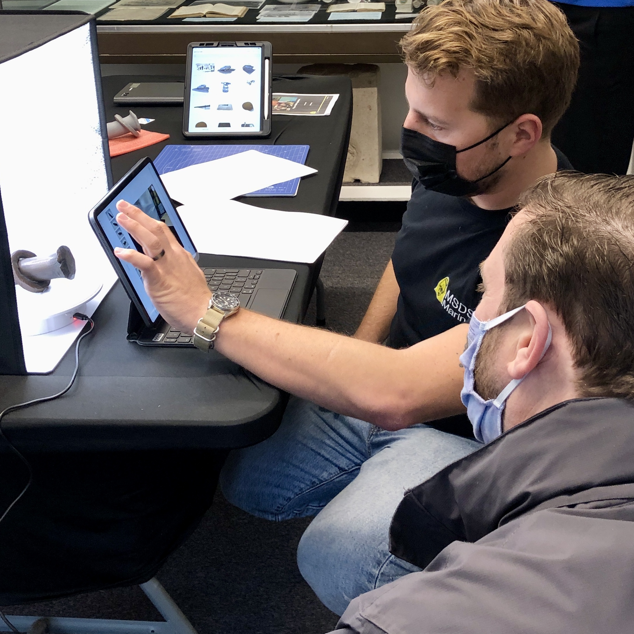 Our partners in the Heritage Lottery Fund project, Diving into the Digital Archives of the Earl of Abergavenny, were training us in how to 3D photograph the finds from the ship that will eventually be uploaded to our website via Sketchfab.