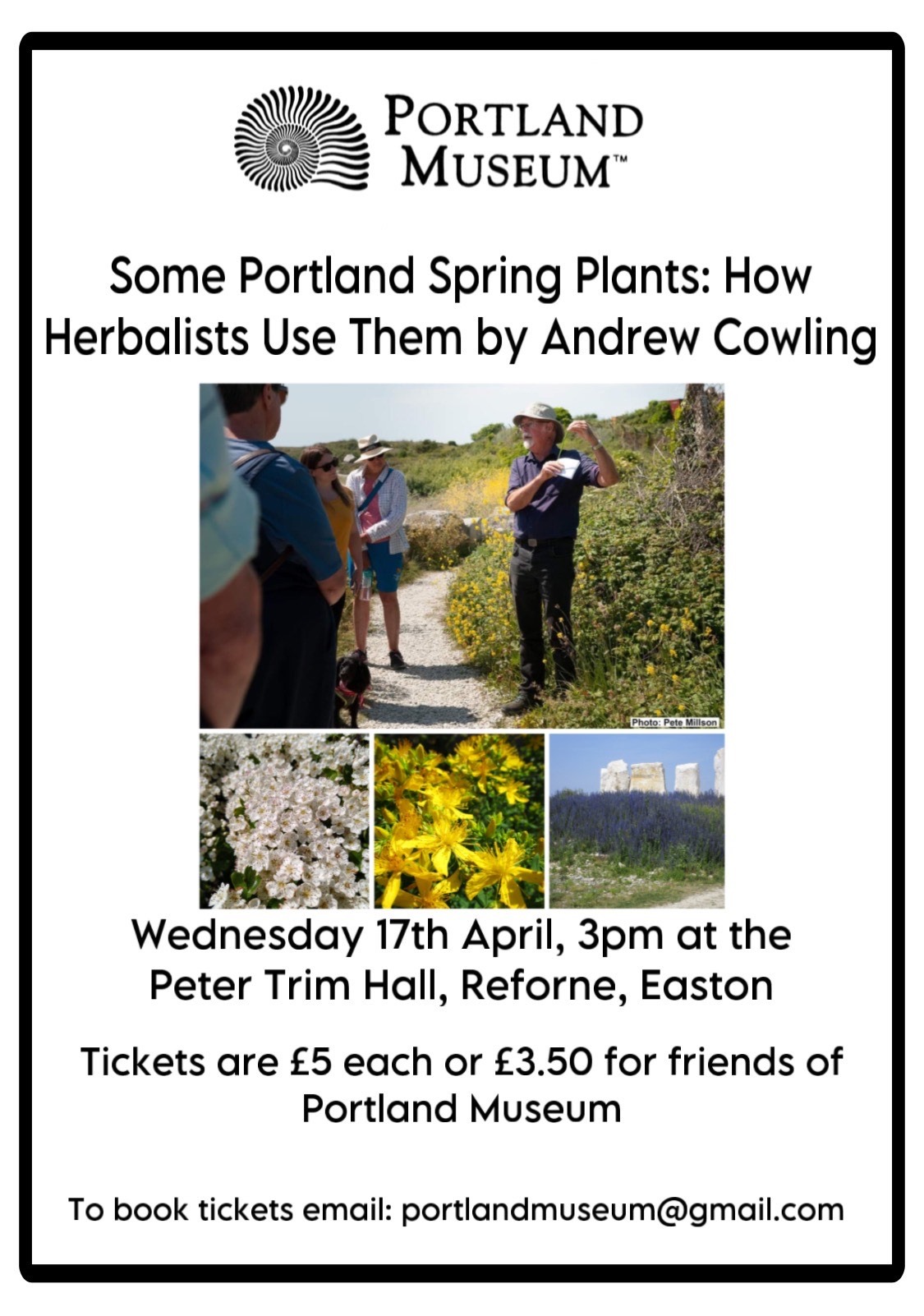 On Wednesday 17th April at 3pm at the Peter Trim Hall, St. George’s Centre, Reforne, Portland Museum is hosting ‘Some Portland Spring Plants: How Herbalists Use Them’ by Andrew Cowling.